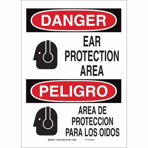 Brady 124086 Bilingual Danger Ear Protection Area Sign