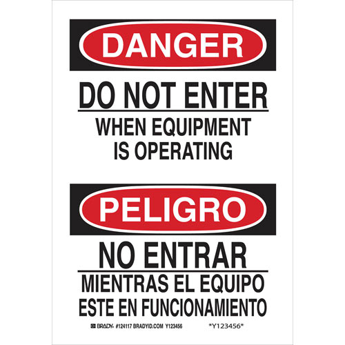 Brady, 124117, 10" x 7" B-302 Danger Do Not Enter When Equipment Is Operating Sign