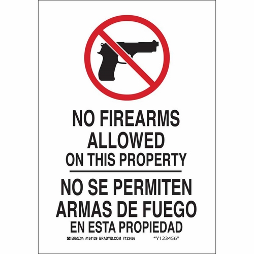 Brady, 124128, 10" x 7" Polystyrene Bilingual No Firearms Allowed On This Property Sign