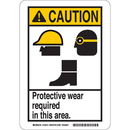 Brady, 124213, 10" x 7" Polyester Caution Protective Wear Required In This Area. Sign