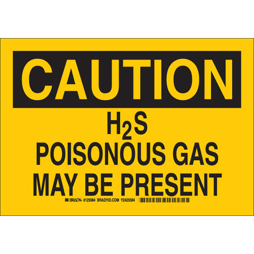 Brady, 124282, 7" x 10" Polyester Caution H2S Poisonous Gas May Be Present Sign