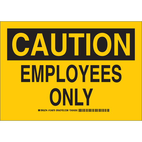 Save 3% each on Brady 124679 7" x 10" Polyester Caution Employees Only Sign when you purchase 50 or more