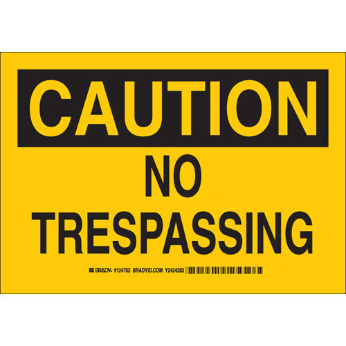 Save 7% each on Brady 124703 7" x 10" Polyester Caution No Trespassing Sign when you purchase 200 or more