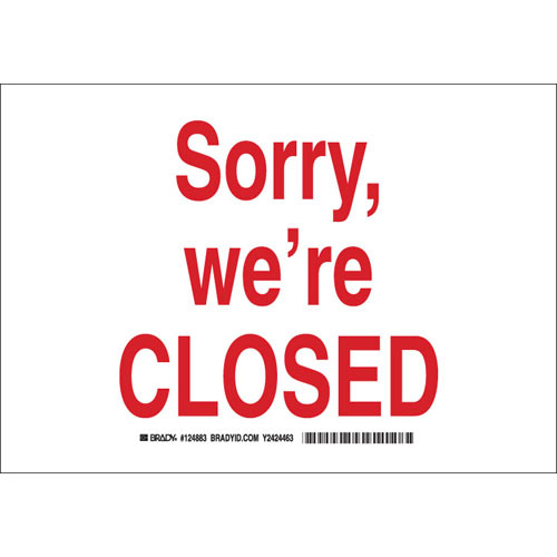 Save 7% each on Brady 124883 7" x 10" Polyester Sorry, We'Re Closed Sign when you purchase 200 or more