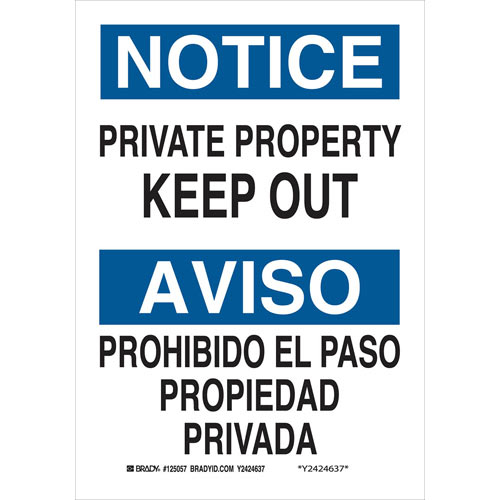 Brady 125057 Private Property Keep Out Propiedad... Sign