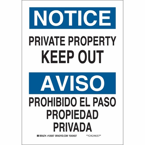 Brady, 125060, 14" x 10" B-302 Notice Private Property Keep Out Propiedad Privada Sign