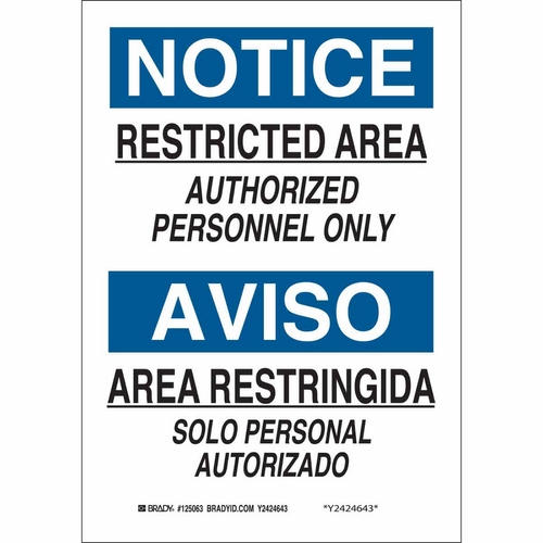 Brady, 125065, 14" x 10" B-401 Bilingual Notice Restricted Area Authorized... Sign