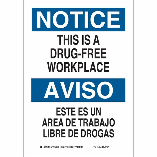 Brady, 125070, 14" x 10" Aluminum Bilingual Notice This Is A Drug-Free Workplace Sign