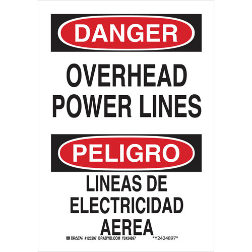 Brady 125297 Bilingual Danger Overhead Power Lines Sign