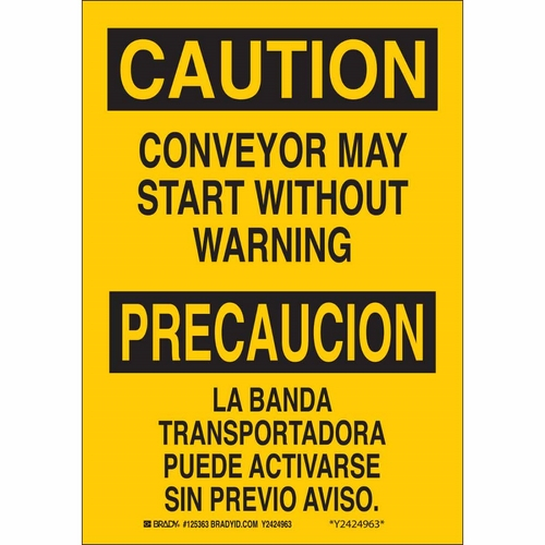 Brady, 125365, 14" x 10" B-401 Bilingual Caution Conveyor May Start w/out Warning Sign