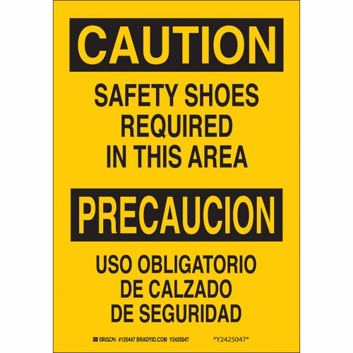 Brady, 125449, 14" x 10" Polystyrene Bilingual Caution Safety Shoes Required... Sign