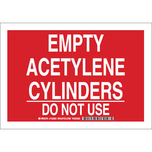 Brady, 125663, 7" x 10" Polyester Empty Acetylene Cylinders Do Not Use Sign