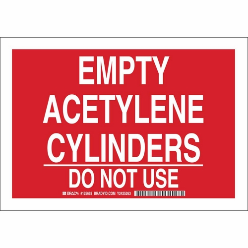 Brady, 125665, 10" x 14" Polystyrene Empty Acetylene Cylinders Do Not Use Sign