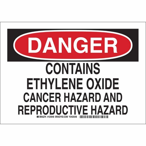 Brady, 125951, 10" x 14" B-302 Danger Contains Ethylene Oxide Cancer... Sign