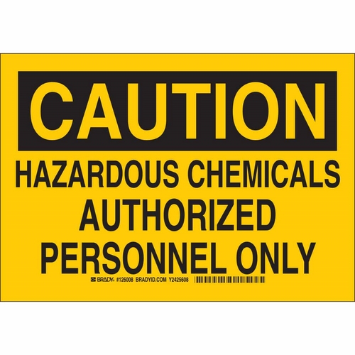 Brady, 126006, 7" x 10" Alum. Caution Hazardous Chemicals Authorized Personnel Only Sign
