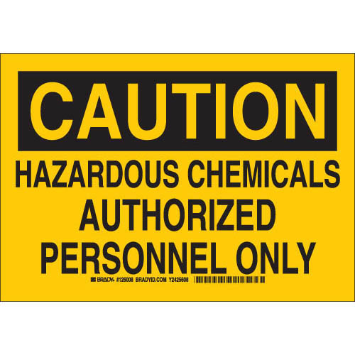 Brady, 126007, 7" x 10" B-401 Caution Hazardous Chemicals Authorized Personnel Only Sign