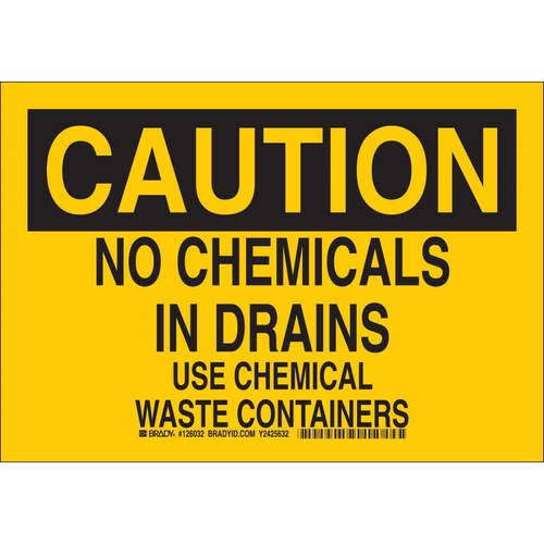 Brady, 126033, 10" x 14" B555 Caution No Chemicals In Drains Use Chemical... Sign