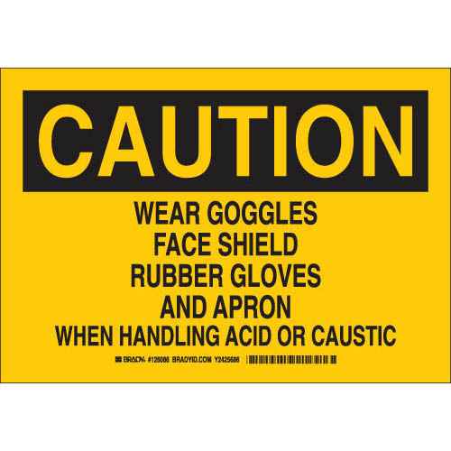 Brady, 126085, 7" x 10" B-401 Caution Wear Goggles Face Shield Rubber... Sign