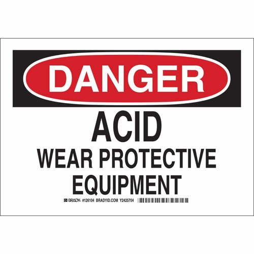 Brady, 126105, 10" x 14" Aluminum Danger Acid Wear Protective Equipment Sign