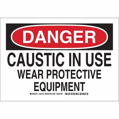 Brady, 126149, 10" x 14" Polyester Danger Caustic In Use Wear Protective Equipment Sign