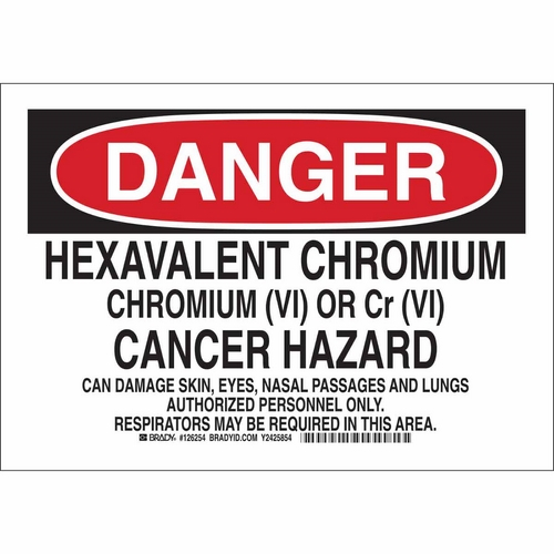 Save 7% each on Brady 126252 Danger Hexavalent Chromium Chromium... Sign when you purchase 50 or more