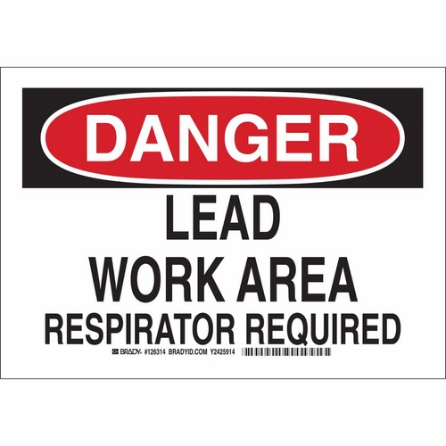 Brady, 126315, 10" x 14" Aluminum Danger Lead Work Area Respirator Required Sign