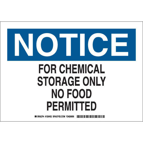 Brady, 126451, 7" x 10" B-401 Notice For Chemical Storage Only No Food Permitted Sign