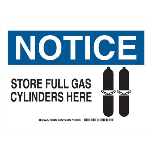 Brady 126482 Notice Store Full Gas Cylinders Here Sign