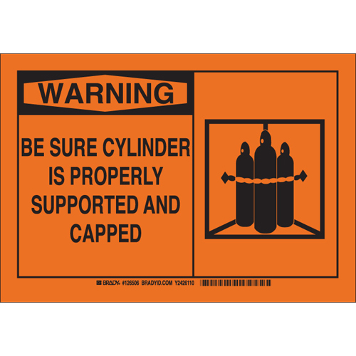Brady, 126506, 7" x 10" Polyester Warning Be Sure Cylinder Is Properly ... Sign