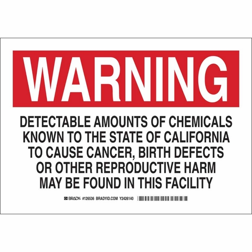 Brady, 126534, 7" x 10" B555 Warning Detectable Amounts Of Chemicals... Sign