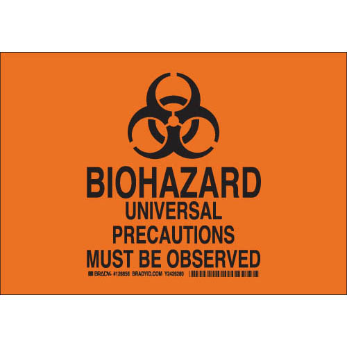 Brady, 126655, 7" x 10" B-401 Biohazard Universal Precautions Must Be Observed Sign
