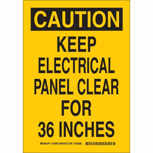 Brady, 126963, 14" x 10" Aluminum Caution Keep Electrical Panel Clear For 36 Inches Sign