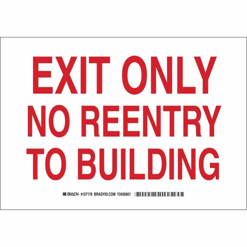 Brady, 127180, 10" x 14" Polystyrene Exit Only No Reentry To Building Sign