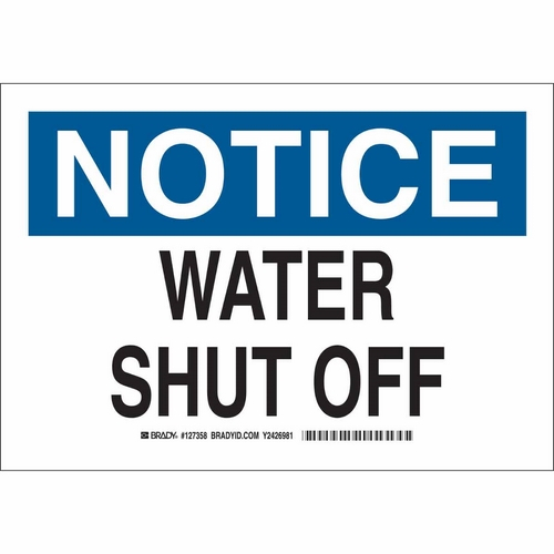 Save 3% each on Brady 127361 10" x 14" Polyester Notice Water Shut Off Sign when you purchase 10 or more