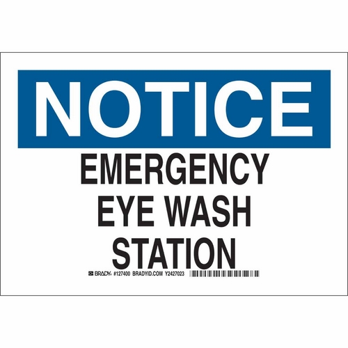 Brady, 127402, 10" x 14" Polystyrene Notice Emergency Eye Wash Station Sign