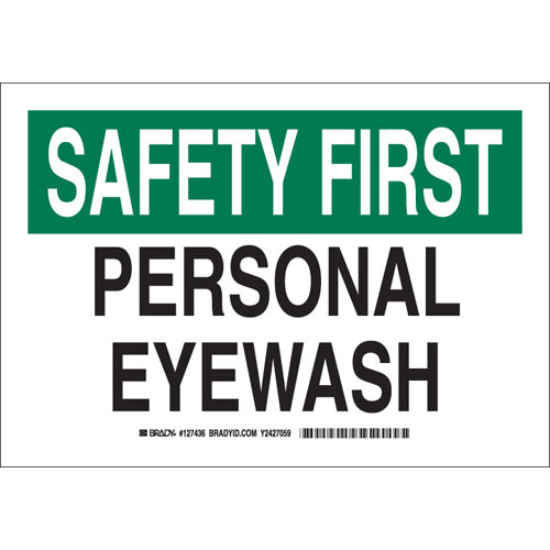 Save 5% each on Brady 127436 7" x 10" Polyester Safety First Personal Eyewash Sign when you purchase 100 or more