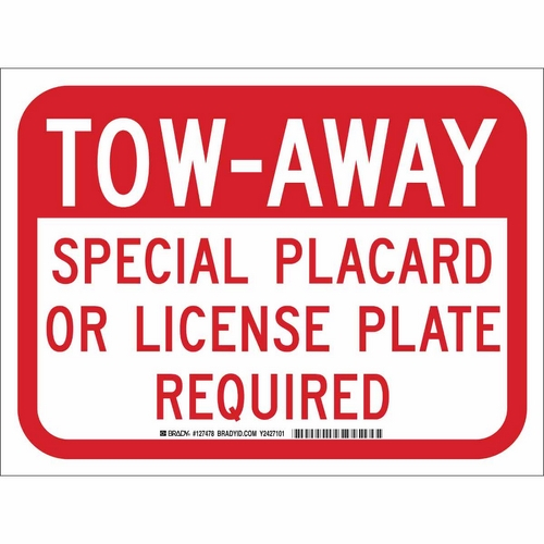 Brady, 127477, 9" x 12" B-401 Tow-Away Special Placard Or License Plate Required Sign