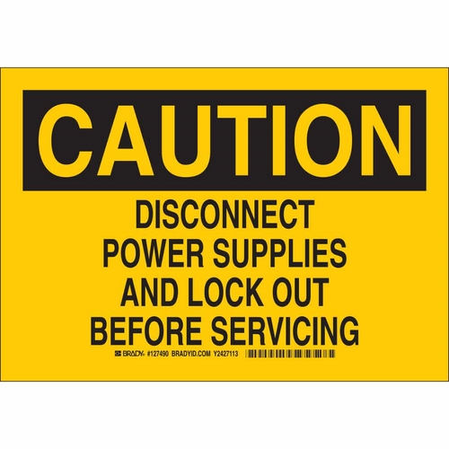 Brady, 127489, 7" x 10" B-401 Caution Disconnect Power Supplies and Lock... Sign