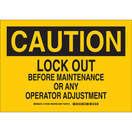 Brady, 127508, 7" x 10" B-302 Caution Lock Out Before Maintenance Or Any... Sign