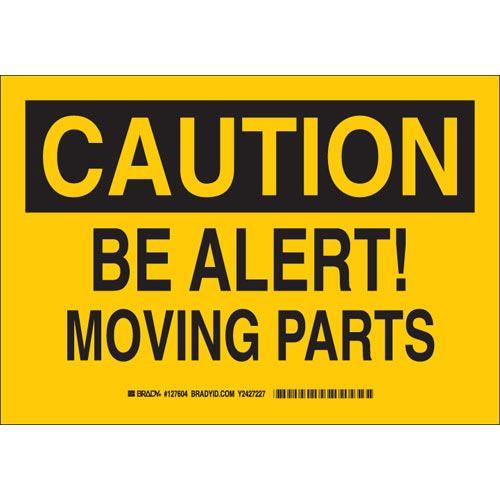 Save 5% each on Brady 127604 7" x 10" Polyester Caution Be Alert Moving Parts Sign when you purchase 100 or more