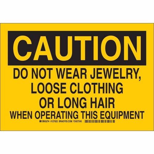 Brady, 127620, 7" x 10" B555 Caution Do Not Wear Jewelry, Loose Clothing... Sign