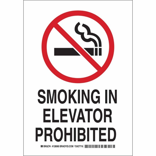 Brady 128061 14" x 10" Aluminum Smoking In Elevator Prohibited Sign