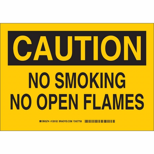 Brady, 128101, 7" x 10" Polystyrene Caution No Smoking No Open Flames Sign