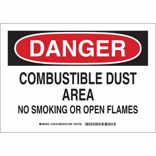 Brady, 128133, 10" x 14" B555 Danger Combustible Dust Area No Smoking... Sign