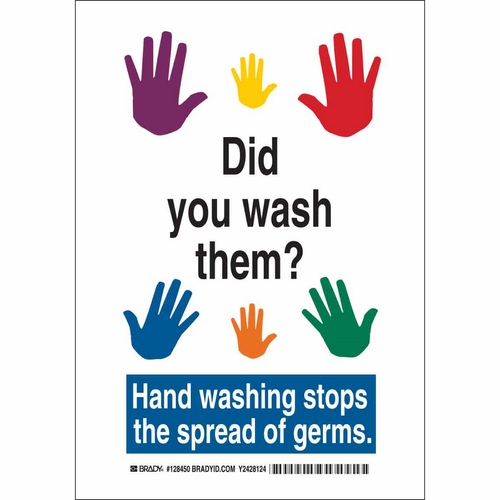 Brady, 128452, 14" x 10" B-401 Did You Wash Them? Hand Washing Stops The... Sign