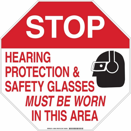 Brady, 128685, 24" x 24" Alum. Stop Protection... & Safety Glasses Must Be Worn... Sign