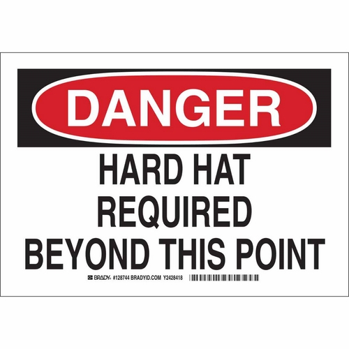 Brady, 128745, 10" x 14" Aluminum Danger Hard Hat Required Beyond This Point Sign