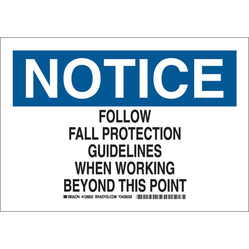 Brady, 128852, 7" x 10" B-302 Notice Follow Fall Protection Guidelines When... Sign
