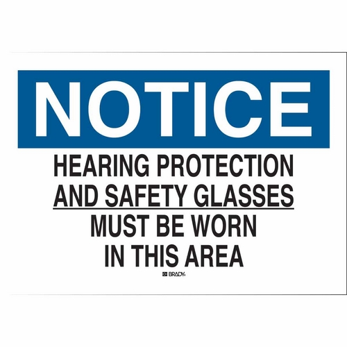 Brady, 128877, 10" x 14" B555 Notice Protection... & Safety Glasses Must Be Worn... Sign