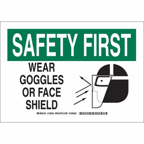 Brady, 128953, 7" x 10" Polystyrene Safety First Wear Goggles Or Face Shield Sign